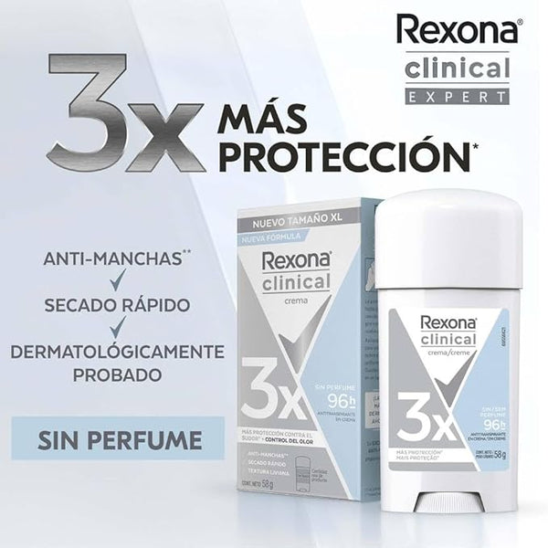 Rexona Clinical Unisex Antiperspirant Deodorant in Cream Unscented All Day Protection Sweat Block and Bad Odor Block 58g (2.04 oz) each 3 Pieces