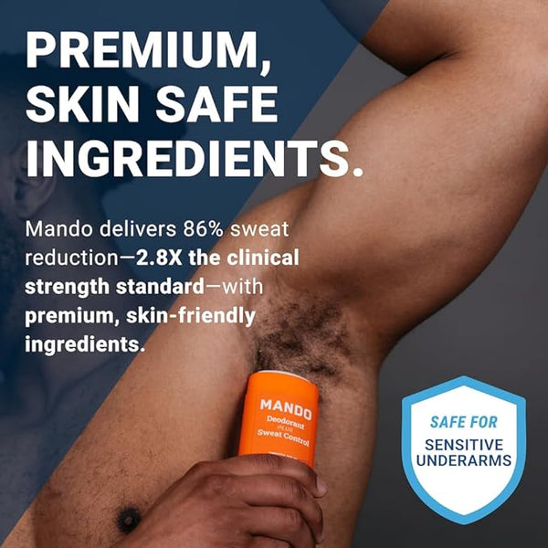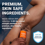 Mando delivers 86% sweat reduction?2.8X the clinical strength standard?with premium, skin-friendly ingredients.