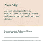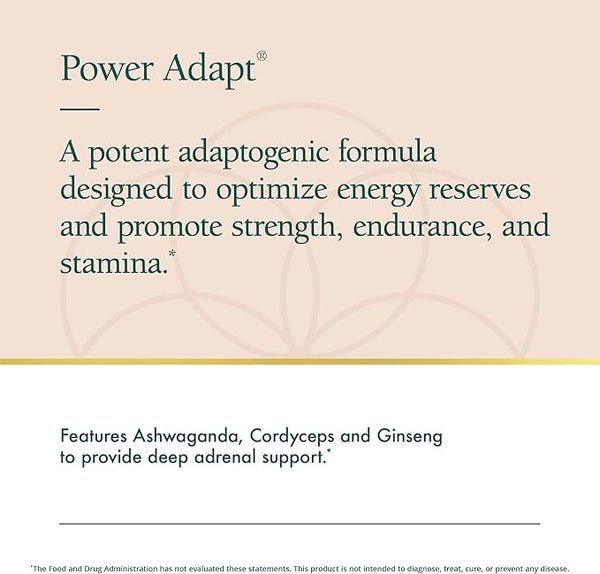 Power Adapt is a dynamic, deep-acting botanical tonic with a strong focus on restoration. It is beneficial in conditions of endocrine depletion and adrenal exhaustion due to over-exertion. Power Adapt promotes the building processes of the body (constructive metabolism), optimizing recovery time by encouraging the body¡¯s natural repair processes. It is also a profoundly supportive tonic that enhances mental and physical performance. The unique combination of powerful adaptogenic botanicals works to maximize energy, stamina and endurance. Power Adapt is perfect for highly active people who desire peak performance and want to maximize the benefits from athletic training and exercise.