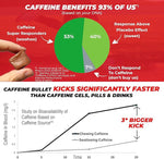 As you chew Caffeine Bullet the caffeine is absorbed in your mouth, bypassing your stomach, for a kick in only 5 minutes, peaking 3 times faster than gels, pills and drinks.