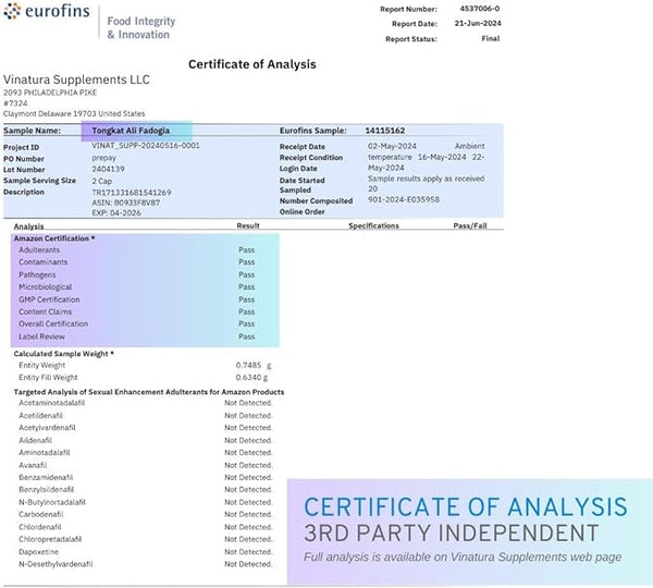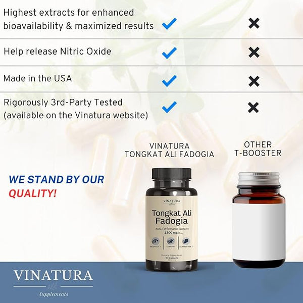 Vinatura Tongkat Ai and Fadogia Agrestis Supplement - Made and tested in USA.