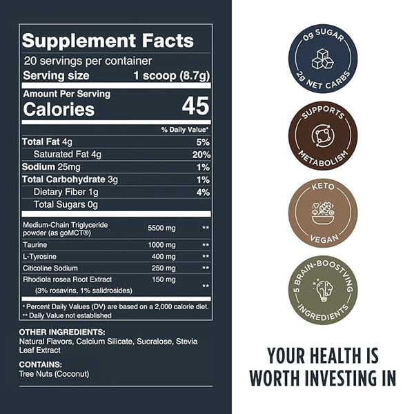 Clean, fast-absorbing MCTs support digestive health & overall wellness. No better way to start your morning.
