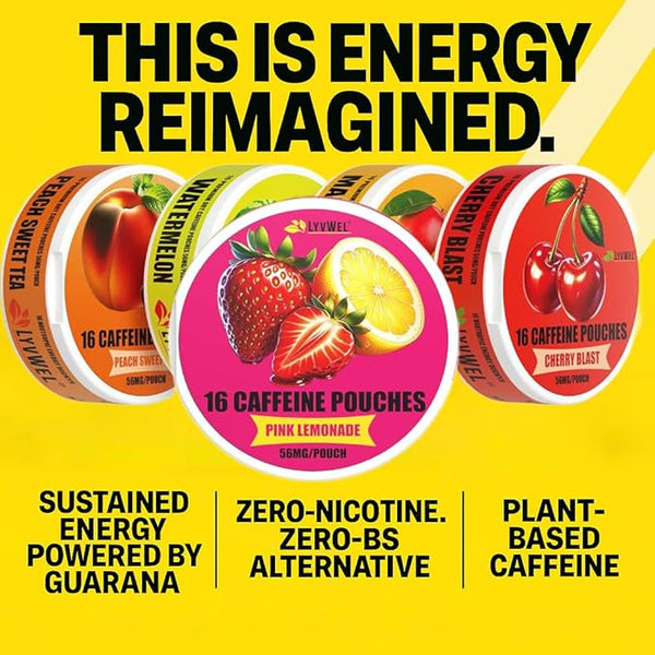 Product descriptionLYVWEL Caffeine Dip Pouches: 56mg Caffeine | Nicotine-Free | Tobacco-Free | Coffee Pouches
