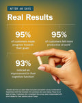 Experience the effects in as little as 60 minutes, though it may take a few days for your body to fully metabolize the ingredients. After 6-8 weeks of consistent use, you'll notice more profound changes in mental clarity and cognitive processing.