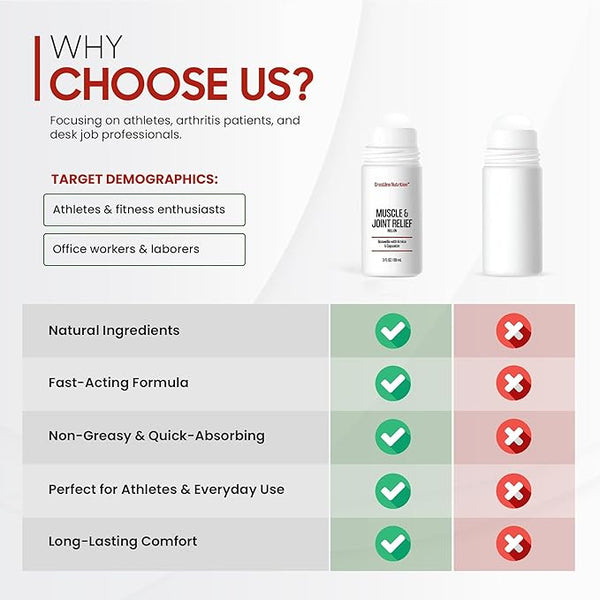 This powerful roll-on works to ease muscle soreness, improve mobility, and support overall joint function, allowing you to move freely and stay active. Whether you're dealing with post-workout discomfort or joint stiffness from daily activities, Crestline Nutrition Muscle & Joint Relief is your go-to solution for targeted relief and long-term wellness.