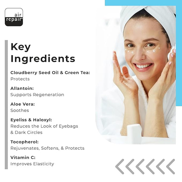 The Air Repair Skincare soothing eye cream moisturizer has allantoin, cloudberry, & eyeliss that condition the skin around your eyes for an instant under eye wrinkle repair & an anti aging eye cream for women &men.