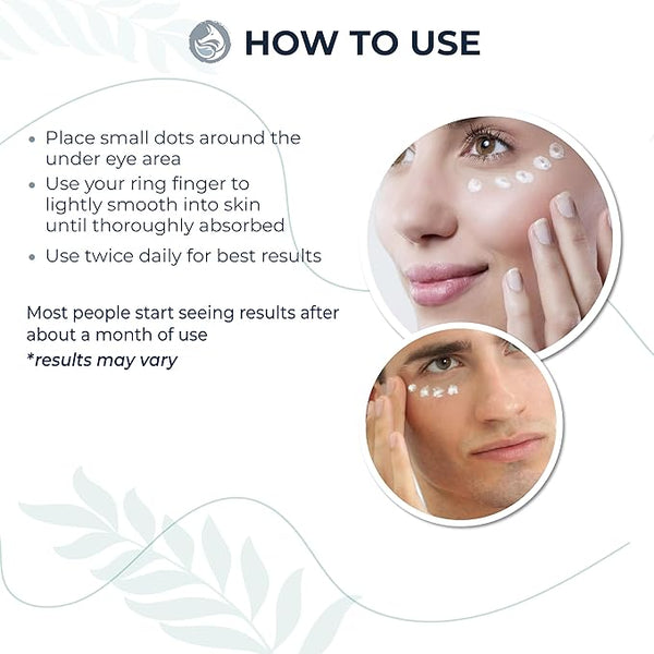 This refreshing fast-absorbing formula comes in a 0.5 oz jar. Only a small amount is needed. Place small dots around the under eye area. Use your ring finger to lightly smooth into skin until thoroughly absorbed. Use twice daily for best results.