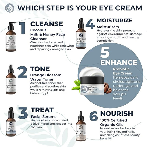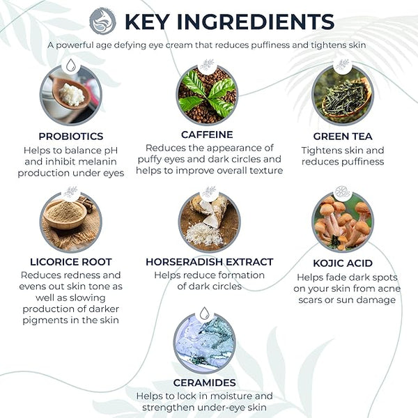Our Probiotic Eye Cream has Lactobacillus ferment lysate which is a probiotic ingredient that helps in reducing dark circles and elasticity, minimizing wrinkles, and providing deep hydration.