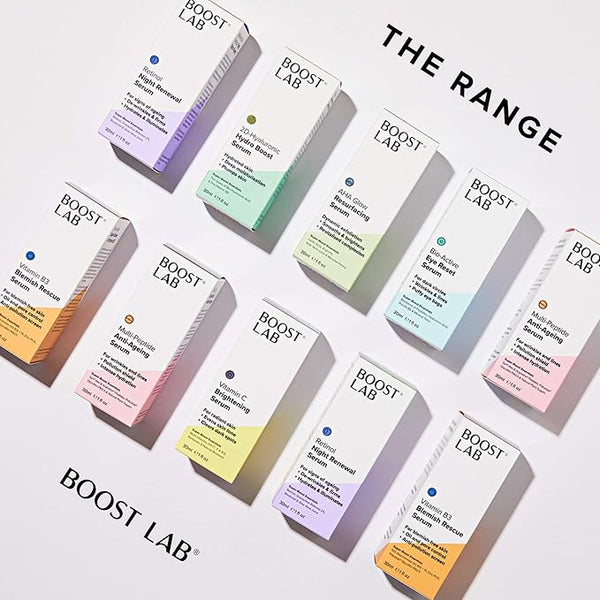 Based on the latest understanding in skin science, each BOOST LAB serum has been carefully designed using Gold Standard problem-solving ingredients, containing actives uniquely designed to address the 7 most common skin concerns.