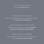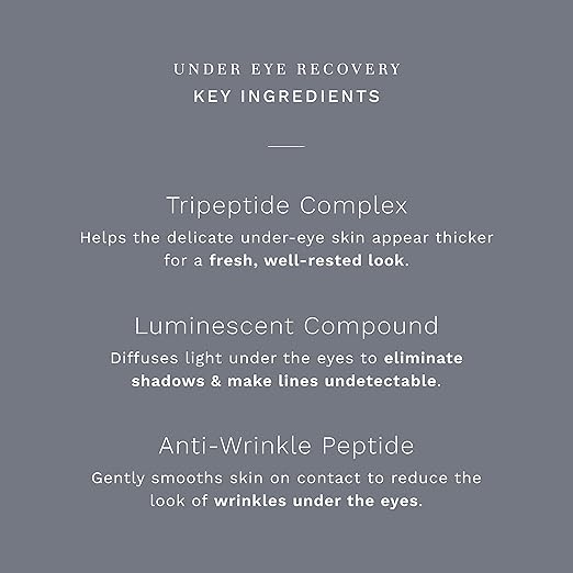 Under Eye Recovery delivers both instant and long-lasting results. Dark under-eye circles quickly appear illuminated and wide-awake with the help of our light-scattering, shadow-deflecting technology. Under Eye Recovery is also full of brightening and smoothing ingredients that help hydrate your skin and reduce the appearance of darkness, puffiness, and wrinkles.