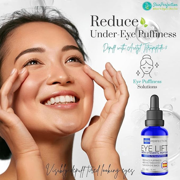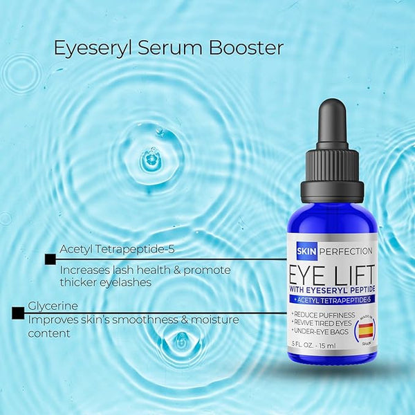 Skin Perfection Eyeseryl Serum Booster or Acetyl Tetrapeptide-5 helps to drain the accumulation of fluids trapped in the under-eye area. Who doesn't want to turn back the clock and help your skin look younger? Target your under-eye bags by promoting lymphatic circulation. When applied, the stagnant water that gets trapped in your eyelids, resulting in puffiness, will begin to flow and significantly be reduced. Hard-working Acetyl Tetrapeptide-5 diminishes the appearance of under-eye bags fast. This skincare booster works hard to get you the timeless results you want at a fraction of the cost. Get highly concentrated eye serum for anti-aging by simply adding a 10% concentration in a bulk base, existing skincare product, or your own formula. Do not apply directly to the skin; it must be mixed into a base product.