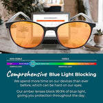 100% Blue Light Blocking Glasses - Women + Men - Better Sleep - Anti Eye Strain Protection - Computer Screens Gaming