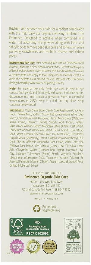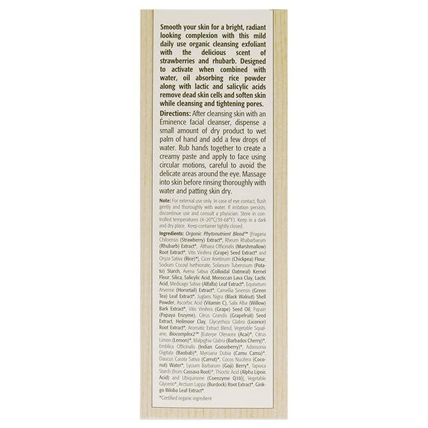 From the manufacturerEminence Strawberry Rhubarb Dermafoliant, 4.2 OunceHow to use: Dispense a dime sized amount of dry Dermafoliant to palm of hand and add a half teaspoon of water. Rub...