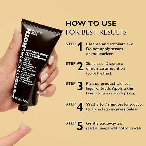 From the manufacturerFIRMxInstant FIRMx Temporary Face TightenerKey IngredientsSuggested Usage & Study ResultsPeel and firm the look of skin instantly and over time.The ultimate quick fix! Instantly help firm and smooth...