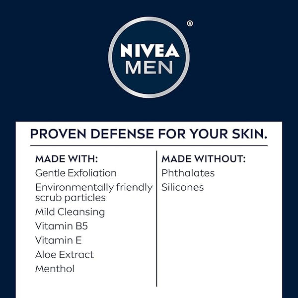 NIVEA MEN Maximum Hydration Deep Cleaning Face Scrub has a light fragrance. It is free of phthalates and silicones.