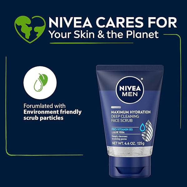 NIVEA MEN Maximum Hydration Deep Cleaning Face Scrub refines and smooths the complexion and is ideal for pre-shave prep. You certainly can use it after cleansing if you choose to.