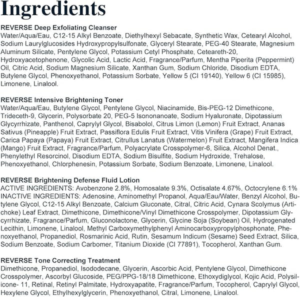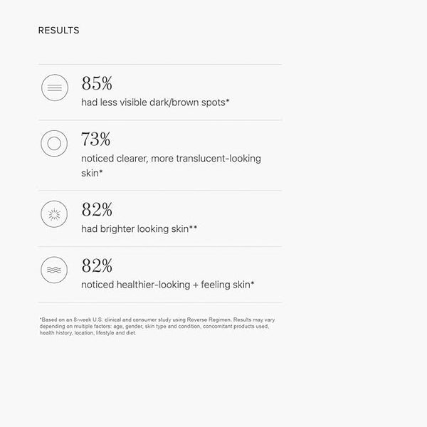 For best results, use the full REVERSE Regimen. Each step builds on the last to address brown spots, dullness, discoloration and fine lines. The steps exfoliate, brighten and protect. Skipping any step can reduce results.