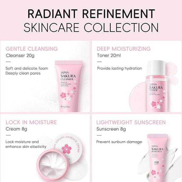 Facial Kit for Women£ºThe mini size of our Girl skin care kit travel size makes it easy to go out. Whether you are on a business trip or traveling, just bring our sakura skincare kit teen girl gifts ,it can meet your daily skin care needs and keep your skin healthy and beautiful!