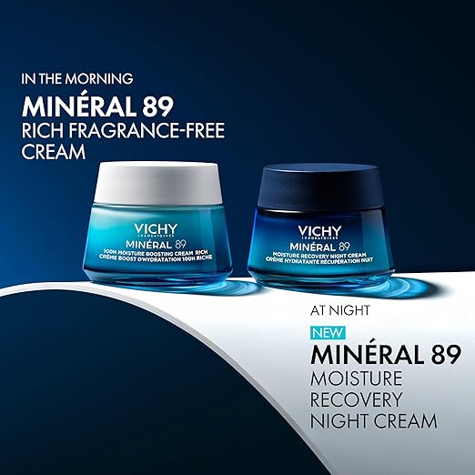 Our Mineral 89 Moisture Recovery Night Cream uses melatonin, minerals from Vichy Volcanic Water, and hyaluronic acid to strengthen and repair the skin's moisture barrier overnight, resulting in hydrated, plump, and radiant skin when you wake up.