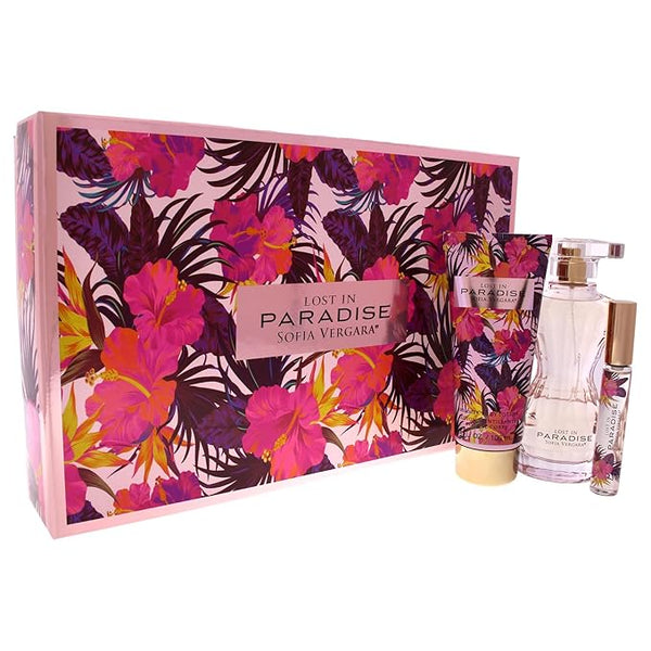 SOFIA VERGARA Lost In Paradise Women 3 Pc Gift Set 3.4oz EDP Spray, 10ml EDP Roller Ball, 3.4oz Body Lotion