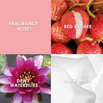 Radiating like a kiss of flirty temptation, fruity notes of luminous lychee, transparent quince and sparkling citrus water create a zesty and bright first impression.