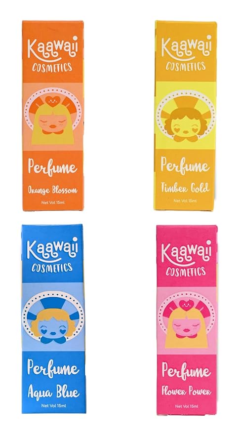 Cosmetics Perfume Safe Water Based 4years To 12years Long Lasting Aqua Blue, Timber Gold, Orange Blossom & Flower Power Fragrance Spray Combo Pack of 4 (15ml Each)