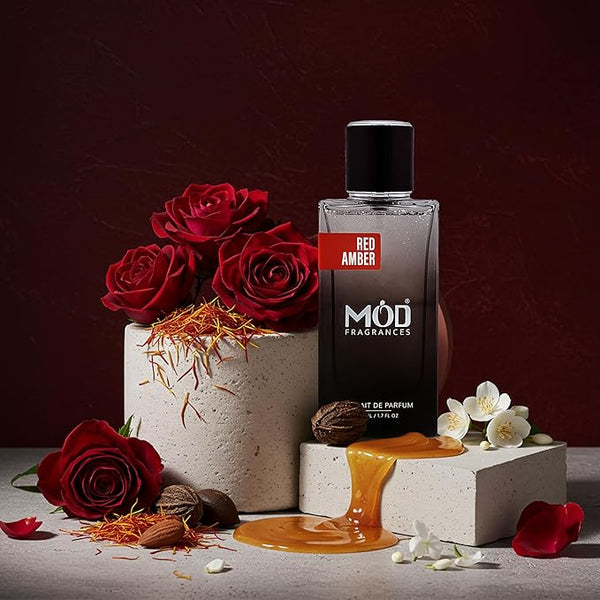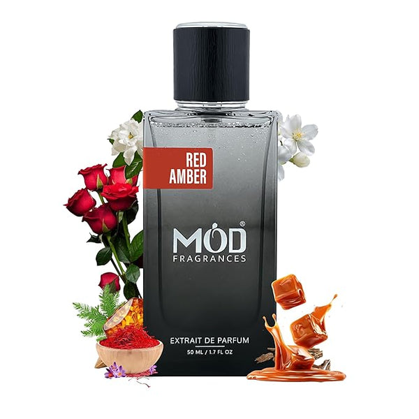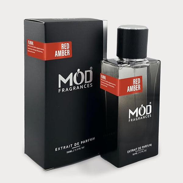 Red Amber by Mod Fragrances is a luxurious extrait de parfum that blends saffron, jasmine, and ambergris into a warm, long-lasting unisex fragrance radiating sophistication, depth, and timeless allure.