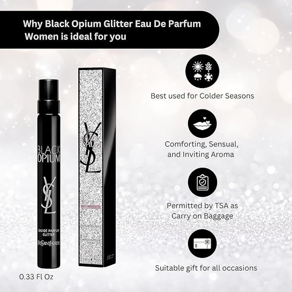 Yves Saint Laurent YSL Black Opium Glitter Eau De Parfum for Women - Travel Size 0.33 Fl Oz.
