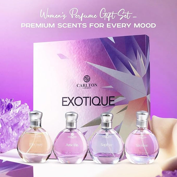 Carlton London Exotique Women's Perfume Gift Set, 4 Premium Fragrances with Far Away, Amethis, Sapphire, Girl Rose, 30ml Each, Luxury Fragrance Collection