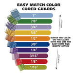 The colored guards make it easy to you to remember the exact cutting guard to use on your next haircut.