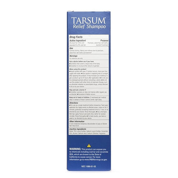 Product descriptionTarsum Shampoo Brand VideoGet Scalp Soothing ReliefDry Scalp ShampooProductDry Scalp Shampoo8 oz (237 ml)Net Weight4 oz (118 ml)10% Coal Tar TopicalFormula10% Coal Tar TopicalFor DandruffFor PsoriasisFor DermatitisMade in USADry...