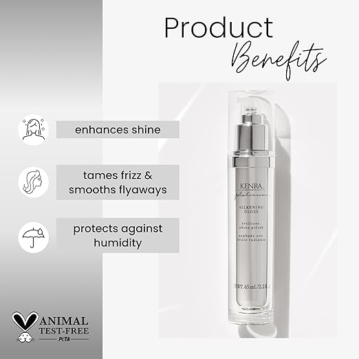 Kenra Platinum Silkening Gloss is a lightweight formula for silky, lustrous hair and skin.