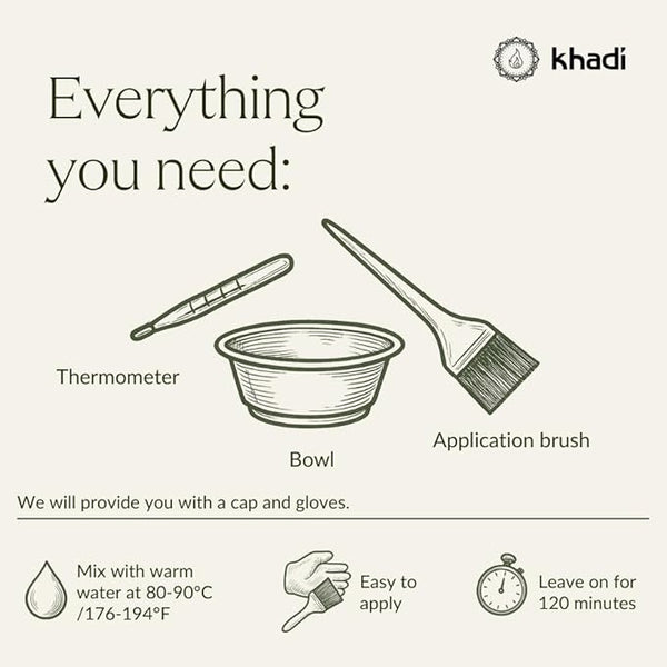 Wash your hair with a natural shampoo. If you use silicone-based products on your hair, try our khadi Detox Mask first for optimal results. If you have white, grey or very light hair, you may need to use khadi Color Prep first.