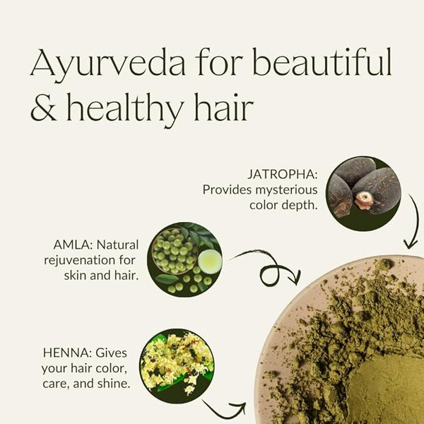 In contrast to synthetic hair dyes, where oxidizing agents cause the hair to swell in order to open the outer cuticle layer for the pigments, with khadi plant-based hair dyes the pigments wrap around each individual hair like a protective shell. Thanks to the Ayurvedic care power of our ingredients, the coloring nourishes, vitalizes and strengthens the hair and scalp.