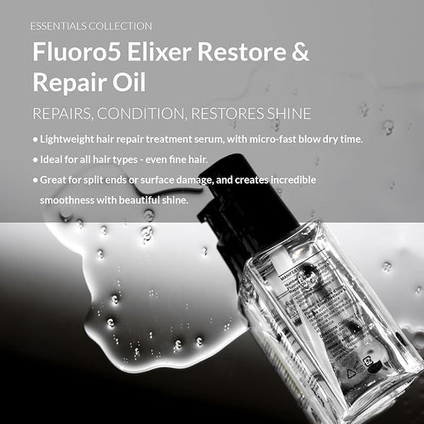 Fluoro5 Hair Oil restores dry, brittle strands and delivers lasting hydration. Lightweight and perfect for all hair types, it adds shine, reduces frizz, and supports healthy growth. Infused with argan oil, it's ideal for damaged, color-treated, or processed hair.