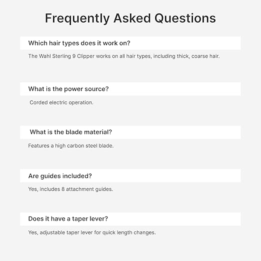 Product description8145 Sterling 9 Corded ClipperWahl Professional Best SellersThis is a modal window.Cordless Magic ClipSuper Taper XCordless Barber ComboVaporVanishCorded Magic ClipDetailer Li