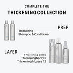 Thickening Mousse 12 plumps each strand of hair by up to 150% and adds fullness and body to achieve the appearance of thicker hair. This ultra-lightweight formulation resists humidity for up to 48 hours and provides a flexible, touchable hold for up to 24 hours.