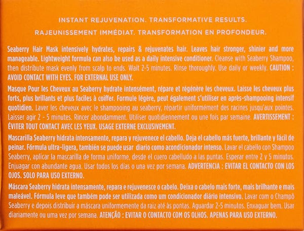14 Essential Vitamins and Antioxidants: Intensely super-charged with Vitamins A, C, E, B1, B2, D, K and P to revive the hair¡¯s vitality. The Seaberry has 5 times more Vitamin C than an orange, 3 times more Vitamin A than carrots and as much Vitamin E as wheat germ.