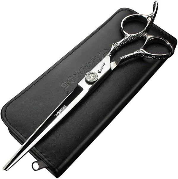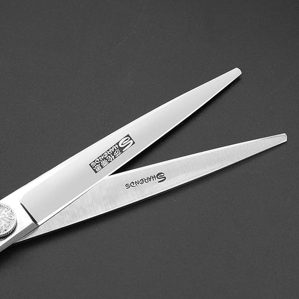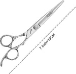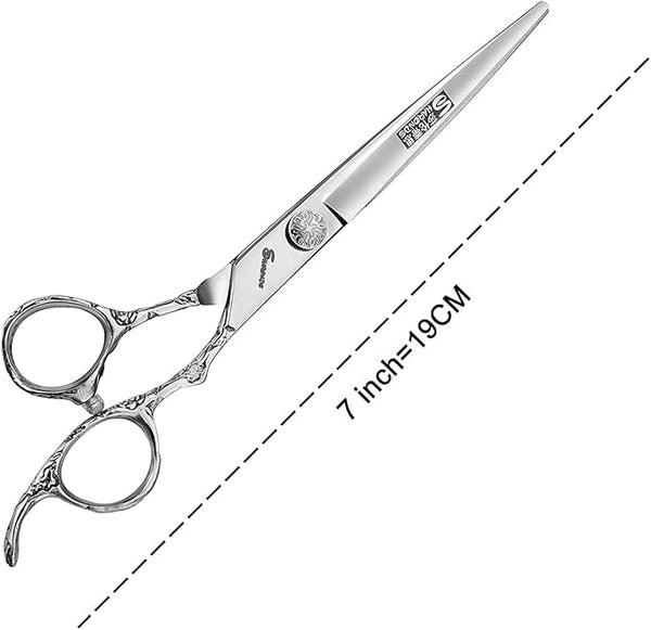 Product descriptionHandle designCutting ScissorsSize: 7 inchesMaterial: 440CFull length: 19CMLevel:AAAAAHardness:62HRCIt conforms to the design of the human hand and is more convenient to use.Sharp blades do not affect your productivity and...