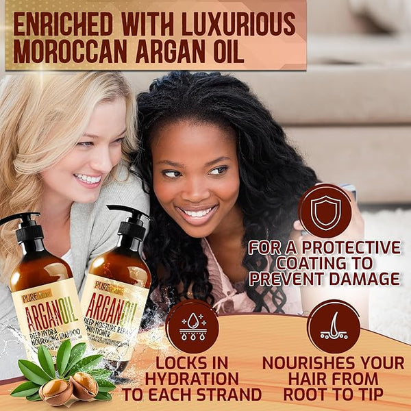 Upgrade your hair care routine to a professional grade argan oil shampoo and conditioner formulated by salon experts to boost shine and trap moisture.