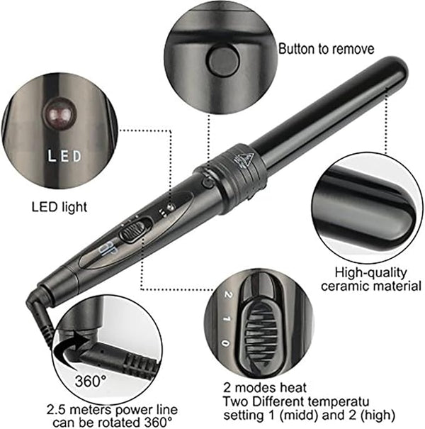 1. Our professional hair styling tools include 3 tourmaline ceramic barrels (20-25mm, 9-19mm, 25mm, Hair Waver iron ), perfect for making loose curls, natural curls, body waves, small or medium curls, and vintage waves. The barrels of different diameters and shapes produce various styles of curls. With it you are the most fashionable hair stylist£¡