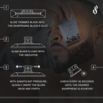 Transform regular trimmer blades into modified specialty blades with our blade sharpener block. With this blade modifier, you can create ultra-close shaves, crisp line-ups, and clean fades, just like a pro.