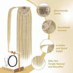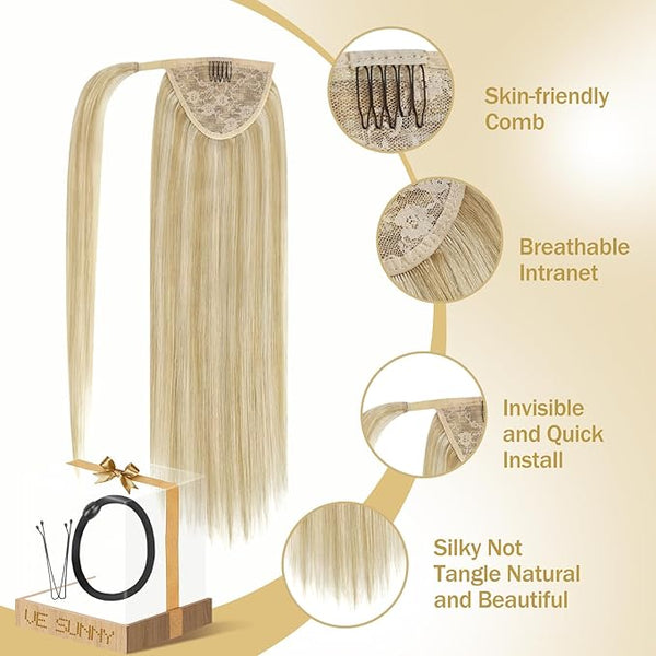 This ponytail hair extension is made of long, straight real human hair, delivering a comfortable and smooth touch. The hair net with a clip secures the ponytail firmly in place to prevent it from falling off.