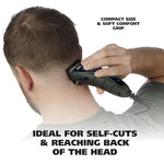 Slim compact design is ideal for self-cuts and easily reaches the back of the head.