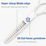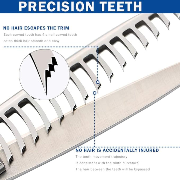 Less hair is cut at a time than red thinning scissors, resulting in a more detailed design experience.For more elaborate hairstyle£¬phasizes on detail.Great for salon workers/ professional barbers/beauty students/Stylist/mother to use on men, women, the elderly,kids,baby,humans and Pet£¨like Dog and cat£©.It's also a good dog Dog Grooming Scissors.