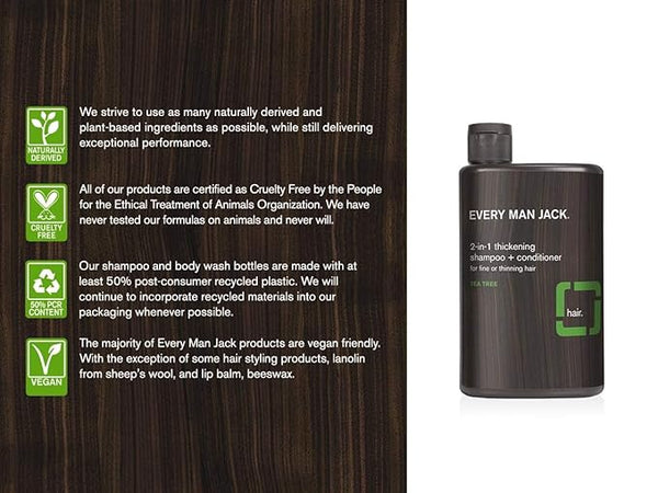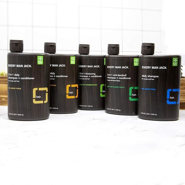 You don't have to settle for thinning hair. Every Man Jack's complete thickening hair car line is made with naturally derived ingredients like hemp seed oil and tea tree oil which leave your locks feeling stronger and looking visibly fuller. The lineup includes both 2 in 1 shampoos and styling products, so your search is over for a stronger, thicker, fuller look.