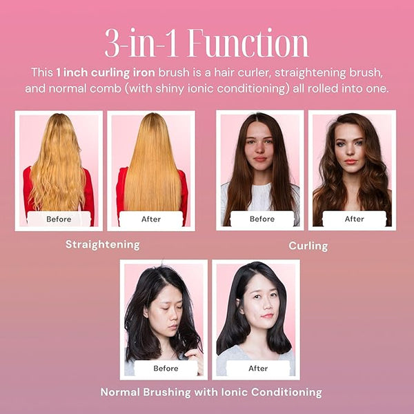 Experience versatile styling with our 3-in-1 function, providing the benefits of a thermal brush, curling iron, and heated round brush in a single tool. Achieve a variety of looks, from smooth waves to beautiful curls, with this all-in-one solution. Whether you prefer a thermal round brush for voluminous waves or a curling wand for defined curls, this tool caters to your styling needs. Enjoy the convenience of a versatile hair iron that combines multiple functions, making it an essential addition to your styling routine.
