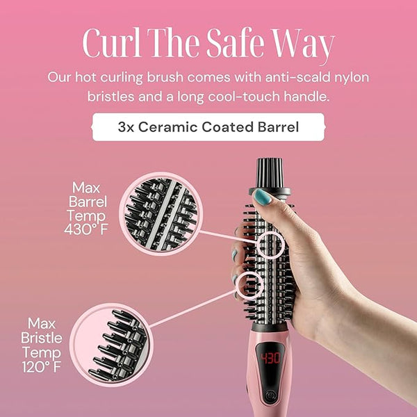 Enhance your hairstyling routine effortlessly with our cutting-edge thermal brush, designed for ease and accuracy. Conveniently regulate the temperature using the LED display, with a maximum bristle temperature of 120¡ÆF and a barrel temperature of 430¡ÆF. The extended 8.2-foot cord with a 360¡Æ swivel ensures adaptability and practicality, making it a perfect choice for styling short hair. Whether you seek a heated round brush, hot brush, or curl brush, this adaptable tool meets all your hairstyling requirements. Embrace the advantages of a thermal round brush, seamlessly blending practicality with user-friendly features for a smooth styling experience.