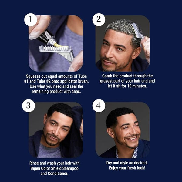 Just comb Bigen EZ Color into your hair or beard, wait 10 minutes, and wash it out. It¡¯s a better way to color your gray hair with natural-looking men¡¯s color. One product colors both hair and beard at the same time.