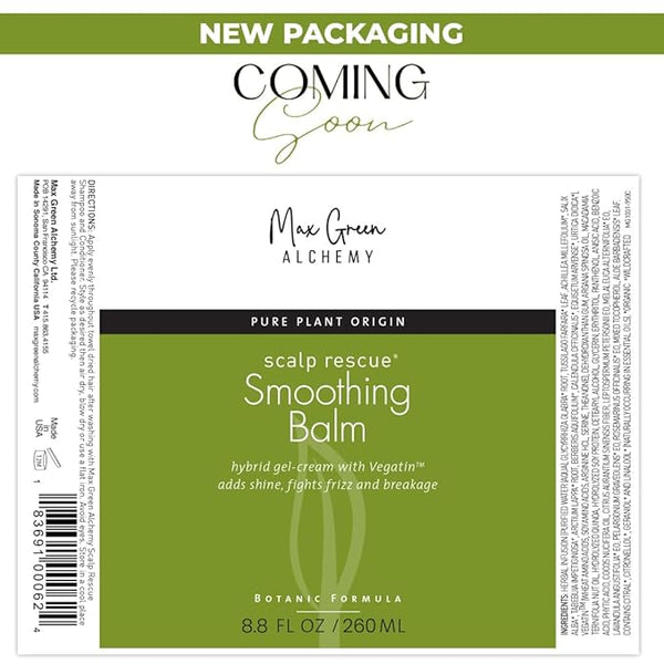 Scalp Rescue Smoothing Balm is a gel base infused with creamy argan, macadamia, and coconut oils to condition and prevent frizz while Vegatin - our vegan keratin replacement - builds strength and elasticity from the inside out to reduce hair breakage.